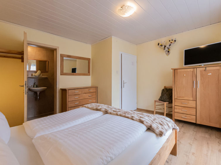 "Charlotte/50604-002146-2020", 10-Zimmer-Haus 240 m2 auf 3 Stockwerken. Gemütlich eingerichtet: 1 Zimmer mit 1 x 2 Etagenbetten, 1 Doppelbett, Bad/Dusche/WC, Kabel-TV, Flachbildschirm, Radio, CD und DVD. Esszimmer mit Esstisch, Kabel-TV, Flachbildschirm, DVD und Holzofen. Grosse Küche (4 Kochplatten, Backofen, Geschirrspüler, Mikrowelle, Tiefkühler, elektrische Kaffeemaschine). Sep. WC. Unteres Geschoss: Spielzimmer mit Kabel-TV (Flachbildschirm). Obergeschoss: 2 Doppelzimmer, jedes Zimmer mit Waschbecken, Dusche und Kabel-TV (Flachbildschirm), Radio, CD und DVD. Ausgang zum Balkon. 1 Doppelzimmer mit Bad/Dusche/WC und Kabel-TV (Flachbildschirm), Radio, CD und DVD. Ausgang zum Balkon. 1 Zimmer mit 1 Doppelbett, Waschbecken, Dusche/WC und Kabel-TV (Flachbildschirm), Radio, CD und DVD. Ausgang zum Balkon. 2. Obergeschoss: 3 Doppelzimmer. Wohnküche (Backofen, Geschirrspüler, 4 Glaskeramikplatten, Wasserkocher, Mikrowelle, elektrische Kaffeemaschine) mit Essecke, Kabel-TV und Flachbildschirm. Ausgang zum Balkon. Bad/Dusche/WC. Schöne Sicht auf die Berge. Zur Verfügung: Bügeleisen, Haartrockner. Internet (WLAN, gratis). Parkplatz beim Haus. Bitte beachten: geeignet für Familien. Nichtraucher-Haus. 1 Haustier/Hund erlaubt. Rauchmelder. Im Keller befindet sich eine Infrarot-Sauna. Im Spielzimmer befinden sich ein Pool Tisch, eine elektronische Dart Anlage, Spielesammlung und eine Bibliothek. Weiters im Haus: Bügeleisen, Babybett, Hochstuhl und Wickelauflage. 50604-002146-2020