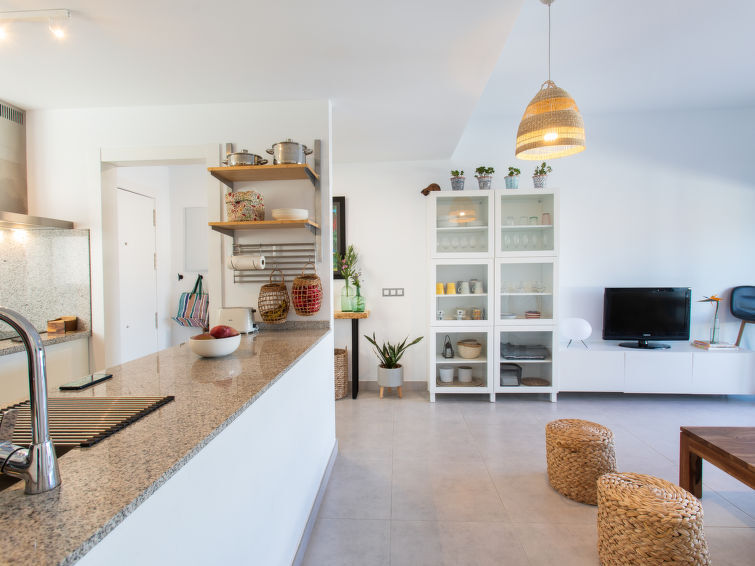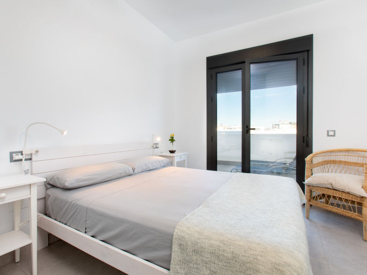 "Maroma", 3-Zimmer-Attikawohnung 70 m2, im Obergeschoss. Geräumig und hell, sehr komfortabel und schön eingerichtet: Wohn-/Esszimmer mit Digital-TV, Klimaanlage, Warmluftheizung und elektrischem Rollladen. Ausgang zur Terrasse. 1 Zimmer mit 2 Betten (90 cm, Länge 190 cm), Klimaanlage und Warmluftheizung. 1 Zimmer mit 1 franz. Bett (150 cm, Länge 190 cm), Dusche/WC, Klimaanlage und Warmluftheizung. Ausgang zur Terrasse. Offene Küche (Backofen, Geschirrspüler, 3 Glaskeramikplatten, Toaster, Wasserkocher, Mikrowelle, Tiefkühler, Grill, elektrische Kaffeemaschine) mit Bar. Ausgang zur Terrasse. Dusche/WC. Grosse Terrasse. Terrassenmöbel, Liegestühle. Sehr schöne, auf die Berge. Zur Verfügung: Waschmaschine, Bügeleisen, Kinderhochstuhl, Babybett, Haartrockner. Internet (WLAN, gratis). Parkplatz Nr. 14. Bitte beachten: Feuerlöscher. VFT/MA/477059 // Reg. Nr.: ESFCTU0000290330007219390000000000000000VFT/MA/477059