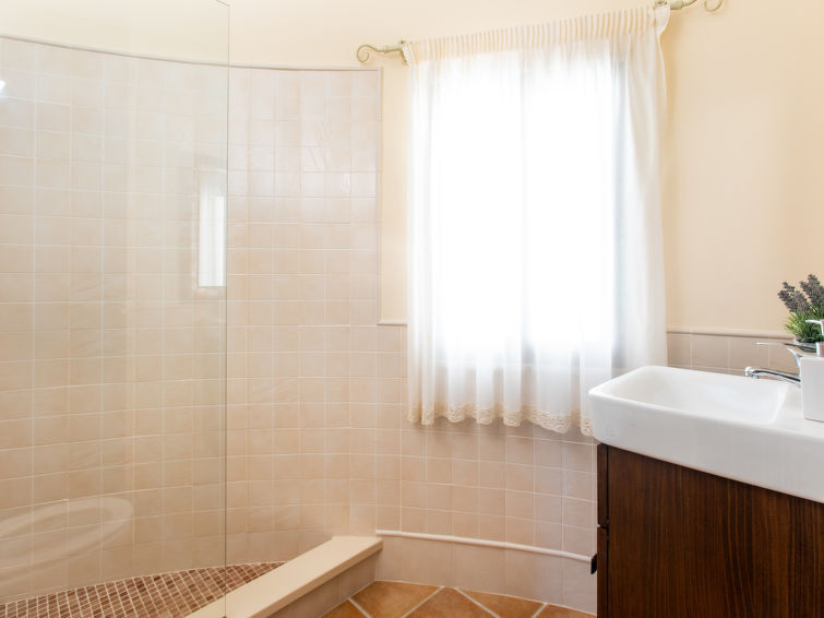 "Ariadna", 3-Zimmer-Villa 80 m2. Komfortabel eingerichtet: Wohn-/Esszimmer mit 1 Diwanbett (135 cm, Länge 190 cm), 1 Schlafmöglichkeit, TV, Klimaanlage und Warmluftheizung. Ausgang zur Terrasse, zum Schwimmbad. 1 Zimmer mit 1 x 2 Etagenbetten (90 cm, Länge 190 cm), Klimaanlage und Warmluftheizung. 1 Zimmer mit 1 franz. Bett (135 cm, Länge 190 cm), Klimaanlage und Warmluftheizung. Offene Küche (Backofen, Geschirrspüler, 2 Glaskeramikplatten, Toaster, Wasserkocher, Mikrowelle, Tiefkühler, elektrische Kaffeemaschine). Ausgang zur Terrasse, zum Schwimmbad. Dusche/WC. Warmluftheizung, Boiler. Komfortable Einrichtung im Landhausstil. Grosse Terrasse. Terrassenmöbel, Gartengrill, Liegestühle (4), Loggia. Herrliche Panoramasicht auf das Meer und die Ortschaft. Zur Verfügung: Waschmaschine, Safe, Bügeleisen, Fliegengitter, Kinderhochstuhl, Babybett bis 3 Jahre, Haartrockner. Internet (WLAN, gratis). Parkplatz (2 Autos). E-Ladestation. Geeignet für Familien. VFT/GR/06530