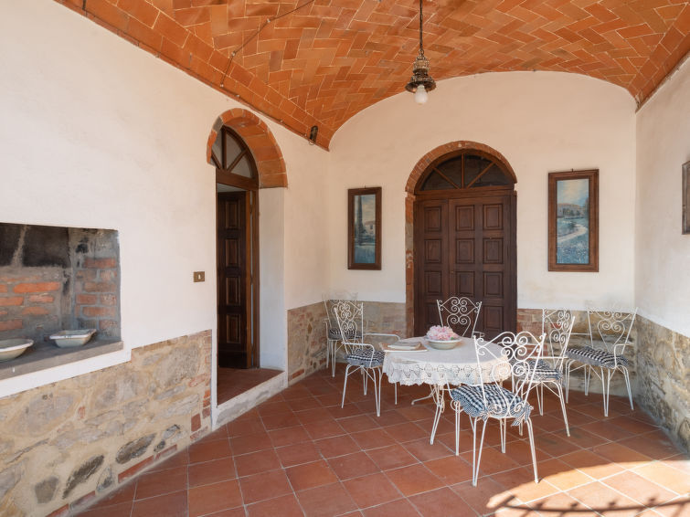 "Poggio Cuccule", huis 15-kamers 410 m2 op 2 verdiepingen. Mooi en antiek ingericht: hal. Uitgang naar de loggia. 4 douche/bidet/WC's. Bovenverdieping: kleine salon met open haard en Sat-TV. 1 2-pers. kamer. 1 2-pers. kamer met open haard. 2 2-pers. kamers, elke kamer heeft douche/bidet/WC. 1 kamer met 2 bedden. Keuken (5-pits kookplaat, oven, afwasmachine, magnetron, diepvriezer) met eettafel. 2 douche/bidet/WC's. Panoramazicht op het landschap. Ter beschikking: wasmachine. Internet (WiFi, gratis). Maximaal 2 huisdieren/honden toegestaan. Rookmelders, brandblusser. Op de begane grond komt men via de entree in een ruime woonkamer (32 m2) met een boog, die de biljartkamer scheidt van het woongedeelte. Via één van de kamers met 2-pers bed komt men via een doorgang (hoogte 1,2 m) in de voormalige duiventil, ingericht als salon met rotanmeubels. Aanvullend bed mogelijk in een van de kamers (extra, op aanvraag, ter plaatse te betalen). De 1e dependance (100 m2) heeft 2 verdiepingen, begane grond: kamer met 2-pers bed, woonkeuken met toegang tot een ruime, overdekte en gemeubileerde loggia van 50 m2, met douche/bidet/WC. 1e Verdieping: kamer met 2-pers bed, kamer met 2 bedden, douche/bidet/WC. De 2e dependance (100 m2) heeft ook 2 verdiepingen, begane grond: ruime lichte woonkamer, keuken, kamer met 2-pers bed, douche/bidet/WC. 1 Verdieping: kamer met 2-pers bed, kamer met 2 bedden, douche/bidet/WC. De keukens in beide dependances zijn zeer compleet ingericht. Let op, er zijn 8 douches / bidets / WC in totaal bij de accommodatie. IT051026B45NRYAQH9