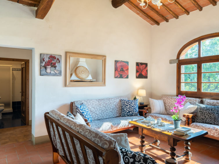 Mooi stenen herenhuis, gebouwd aan het eind van de 16e eeuw . Panoramisch gelegen in een prachtige natuurlijke omgeving op een hoogte van 350 m, temidden van olijfbomen, wijngaarden en bossen. Door de gunstige ligging de bekende plaatsen van Toscane snel bereikbaar, zoals Cortona, Pienza, Montalcino, S. Gimignano en de burchtstadjes van de Chiantistreek. Het herenhuis met 10 slaapplaatsen kan worden gehuurd in combinatie met 2 dependances aan de voorzijde (met elk 6 slaapplaatsen) voor 22 personen in totaal, met een totaal woonoppervlak van 430 m2. Kleinere groepen die in het laag- en halfseizoen alleen het herenhuis en één van de dependances willen huren, krijgen 10% korting (vooraf bij de boeking aanvragen). Houtoven, biologisch fruit en groente ter beschikking. Mogelijkheid om plaatselijke producten te kopen, zoals wijn, vinsanto en olijfolie. Haardhout wordt gratis geleverd. Op aanvraag kunnen er diners worden georganiseerd, voor kinderen vanaf 25 euro, voor volwassenen vanaf 40 euro p.p. Op aanvraag worden er kookcursussen en proeverijen van Toscaanse wijnen georganiseerd (extra). In het aangrenzende eikenbos bevindt zich een bocciabaan (jeu de boules) van 2,50 x 18 m voor volwassenen en een voor kinderen (2x9 m). Grenzend aan het herenhuis is een loggia gebouwd van 40 m2, ingericht om in de openlucht te lunchen/dineren. Groot, kindvriendelijk, comfortabel herenhuis "Poggio Cuccule", 350 m boven zeeniveau, omgeven door bomen. 7 km van het centrum van Montevarchi, Montegonzi, 50 km van het centrum van Firenze, 45 km van het centrum van Siena, rustige, zonnige, verhoogde ligging, te midden van groen. Voor alleengebruik: terrein 7.000 m2 (omheind), wilde tuin 3.000 m2 (omheind), openluchtzwembad (6 x 12 m, 90 - 190 cm diepte, seizoensgebonden beschikbaarheid: 27.Apr. - 11.Okt.). Tafeltennis, tuinmeubelen, barbecue, stookplaats. In het huis: internetaansluiting, biljart, wasmachine, Verwarming ter plaatse te betalen, verwarming alleen beschikbaar van 01.Nov. - 07.Apr.. Wissel van linnengoed 1 maal per week. Schoonmaak op verzoek (extra). Steile toegangsweg (200 m onverharde weg). Parkeerplaats op het terrein. Winkel 5 km, levensmiddelenwinkel 3 km, bushalte 800 m, treinstation "Montevarchi" 5 km. Golfterrein (3 holes) 13 km, tennis 5 km, manege 3 km. Attracties in de buurt: Moto Cross Circuit Miravalle 1 km. Auto noodzakelijk. Geschikt voor families. De eigenaar accepteert geen jeugdgroepen.