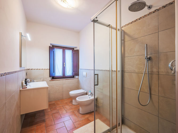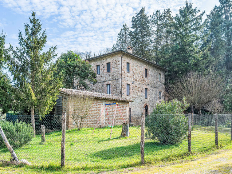 Landhuis "San Damiano", eenzijdig aangebouwd. 5 km van het centrum van Todi, geïsoleerde ligging. Voor medegebruik: terrein 1 ha. Voor alleengebruik: tuin 500 m2 (omheind), openluchtzwembad (10 x 5 m, 150 cm diepte, seizoensgebonden beschikbaarheid: 15.Mei. - 30.Sep.). Douche/WC bij het zwembad, poolhouse. Toegangsweg (600 m onverharde weg). Parkeerplaats. Levensmiddelenwinkel 5 km, supermarkt 5 km, restaurant 5 km, bar 5 km, bushalte 3 km. Auto noodzakelijk. De eigenaar accepteert geen jeugdgroepen. Een deel van het huis is afgesloten en niet bezet. De eigenaar woont op hetzelfde terrein. Het leidingswater heeft geen drinkwaterkwaliteit.