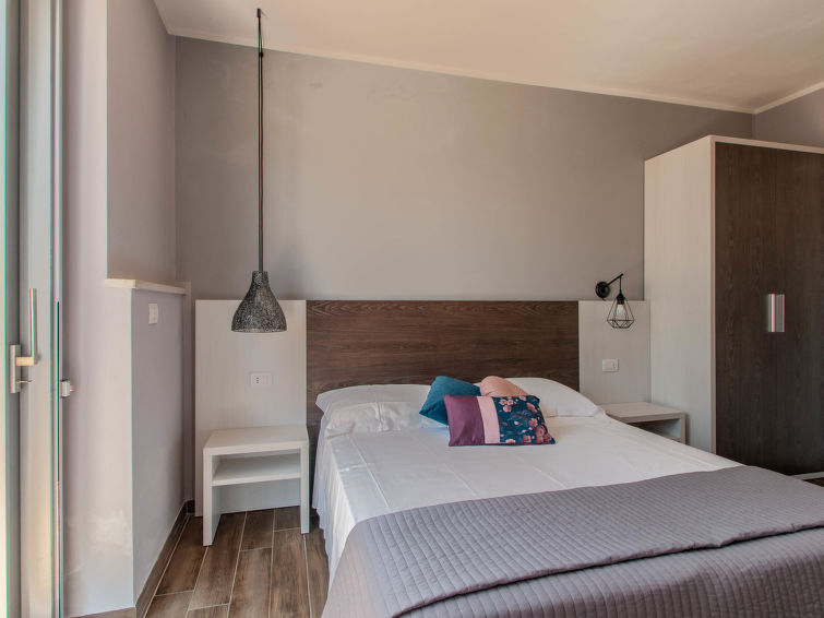 Villa 8-kamers 250 m2 op 2 verdiepingen. Doelmatig en modern ingericht: groot woonkamer met eettafel en TV (Flatscreen TV). Uitgang naar de tuin. 2 kamers, elke kamer heeft 1 x 2 stapelbedden, 1 2-pers bed, douche/bidet/WC en TV (Flatscreen TV). Uitgang naar de tuin. Groot keuken (oven, afwasmachine, 6 kookpitten (vlammen), waterkoker, magnetron, diepvriezer, grill, elektrische koffiemachine, pizzaoven) met aparte WC. Uitgang naar de tuin. 2 aparte WC's. Elektrische verwarming, air-conditioning. Verwarming alleen beschikbaar van 15.10. tot 15.04. Bovenverdieping: open galerij. 1 2-pers. kamer met douche/bidet/WC en TV (Flatscreen TV). Uitgang naar het balkon. 2 kamers, elke kamer heeft 1 bed, 1 2-pers bed, douche/bidet/WC en TV (Flatscreen TV). Uitgang naar het balkon. 1 kamer met 1 bed, 1 2-pers bed, douche/bidet/WC en TV (Flatscreen TV). Uitgang naar de tuin, naar het balkon. Mooi panoramazicht op het landschap. Ter beschikking: wasmachine, kluis, kinderstoel, kinderbed, haardroger. Internet (Internet (WiFi)). 1 klein huisdier/hond toegestaan. Alle kamers zijn tevens uitgerust met een kluisje en een minibar. Een van de tweepersoons-slaapkamers op de begane grond heeft een badkamer voor gehandicapten. IT054052B501031390