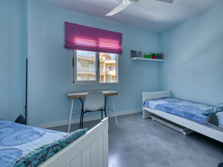 "La Senia", appartement 4-kamers 90 m2. Ruim en licht, zeer mooi en stijlvol ingericht: woon-/eetkamer met Sat-TV, air-conditioning en heteluchtverwarming. Uitgang naar het terras. 1 kamer met 1 2-pers bed (180 cm, lengte 200 cm), bad/bidet/WC, air-conditioning en heteluchtverwarming. 1 kamer met 2 bedden (90 cm, lengte 190 cm), ventilator. 1 kamer met 1 x 2 stapelbedden (80 cm, lengte 190 cm), air-conditioning en heteluchtverwarming. Keuken (oven, afwasmachine, 3 inductiekookplaten, broodrooster, waterkoker, magnetron, diepvriezer, elektrische koffiemachine). Douche/WC. Terras 20 m2. Terrasmeubelen. Zeer mooi uitzicht op zee. Ter beschikking: wasmachine, strijkijzer, klamboe, kinderstoel, kinderbed tot 2 jaar, haardroger. Internet (WiFi, gratis). Parkeerplaats nr. 22. VT-474009-A // Reg. Nr.: ESFCTU00000304500044651600000000000000000VT-474009-A5