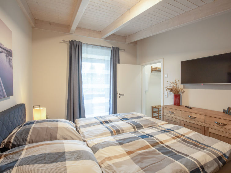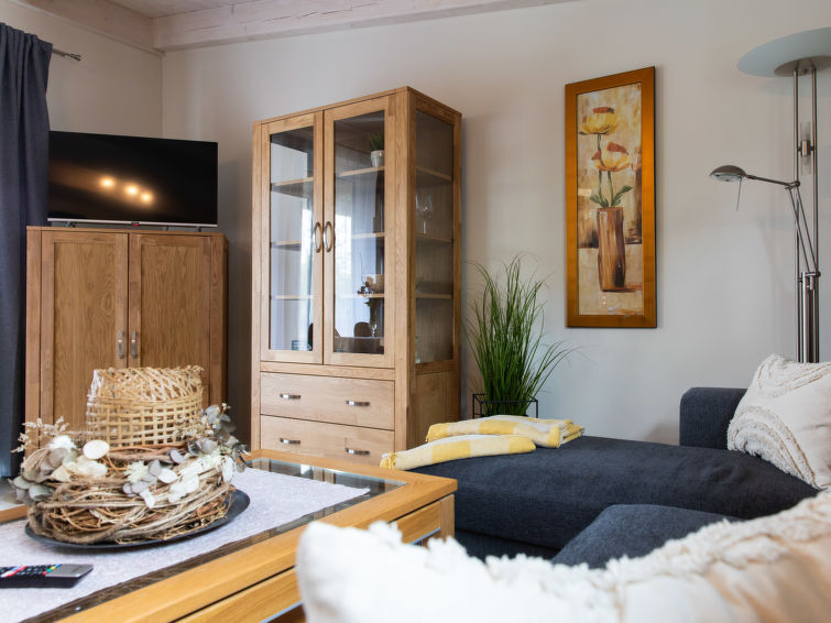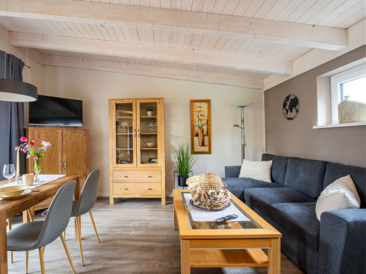 "Heimathafen", appartement 2-kamers 50 m2. Comfortabel en modern ingericht: woon-/eetkamer met Sat-TV (Flatscreen TV). Uitgang naar het terras. 1 kamer met 1 2-pers bed (180 cm, lengte 200 cm). Open keuken (oven, afwasmachine, 4 keramische glas kookplaten, broodrooster, waterkoker, elektrische koffiemachine). Douche/WC. Elektrische verwarming. Groot terras 20 m2. Terrasmeubelen. Ter beschikking: wasmachine (extra). Droger (extra). Internet (Internet (WiFi), gratis). Niet rokers woning.