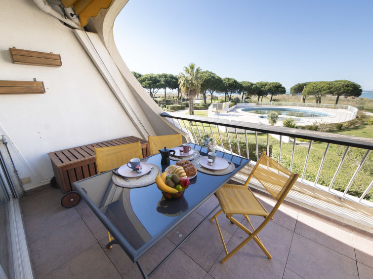Residentie "Escale Plage", van 3 verdiepingen. In de wijk Plage Nord, 80 m van zee, 30 m van het strand. Voor medegebruik: openluchtzwembad (seizoensgebonden beschikbaarheid: 15.Jun. - 15.Sep.). Parkeerplaats. Levensmiddelenwinkel 300 m, supermarkt 3 km, winkelcentrum, restaurant 50 m, bushalte 500 m, treinstation 1.5 km, zandstrand 30 m, overdekt zwembad 2 km, thermaalbad "Thalazur Les Bains de Camargue" 3 km. Jachthaven 300 m, tennis 350 m, midgetgolf 600 m, manege 3.2 km. Attracties in de buurt: Seaquarium 500 m, Casino Flamingo 1 km, Les Arènes du Grau du roi 2.5 km, Aigues-Mortes 8 km, La Grande-Motte 13 km, Nîmes 52 km. Wandelgebied Réserve Naturelle de Camargue. Vliegveld 25 km van het huis.