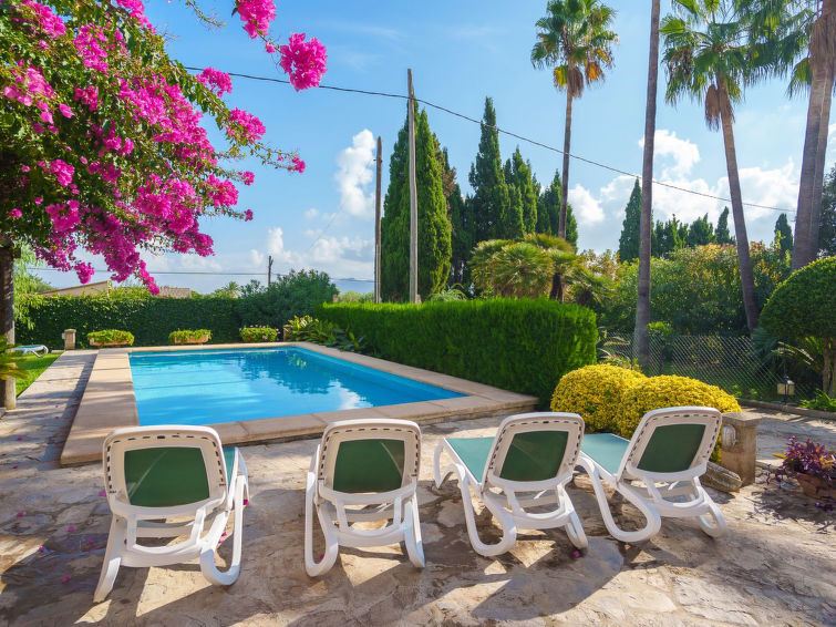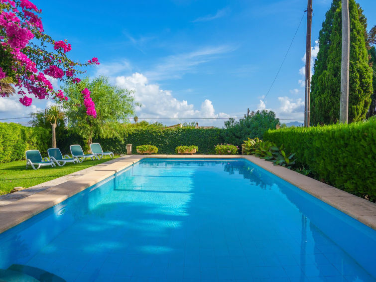 Alcudia 6 km van Pollensa: Groot, comfortabele eengezinswoning "La Truyola Pool Finca", van 2 verdiepingen, omgeven door bomen en velden. Buiten de plaats, 6 km van het centrum van Alcúdia, rustige ligging, 1 km van de bosrand, 6 km van zee, 6 km van het strand, te midden van groen. Voor alleengebruik: terrein 1.600 m2, tuin met gazon en bloemen, openluchtzwembad hoekig (4 x 9 m, 1 - 2 cm diepte, seizoensgebonden beschikbaarheid: 01.Apr. - 31.Okt.). Buitendouche, patio, barbecue, onderhoud zwembad door de eigenaar/tuinman. Parkeerplaats bij het huis op het terrein. Winkel 5 km, levensmiddelenwinkel 5 km, supermarkt 5 km, restaurant 6 km, bar 5 km, bakkerij 5 km, fietsverhuur 6 km, bushalte "Alcudia" 6 km, treinstation "Sa Pobla" 8 km, veerboot "Puerto de Alcúdia" 8 km, zandstrand "Playa de Alcúdia" 5 km, stenenstrand "Alcanada" 8 km, duikschool 10 km. Jachthaven 8 km, jachthaven 8 km, golfterrein (18 holes) 5 km, surfschool 6 km, zeilschool 6 km, tennis 8 km, manege 7 km, sportcentrum 6 km, wandelroutes 5 km vanaf het huis, fietspad 1 km. Attracties in de buurt: Playa de Formentor 18 km, Faro de Formentor 27 km, Monasterio de Lluc 32 km, Cuevas de Campanet 10 km. Wandelgebied La Victoria 14 km, Coll Baix 12 km. Auto noodzakelijk. Geschikt voor families, geschikt voor senioren. De eigenaar accepteert geen groepen. De eigenaar accepteert geen jeugdgroepen. Vliegveld 60 km van het huis.