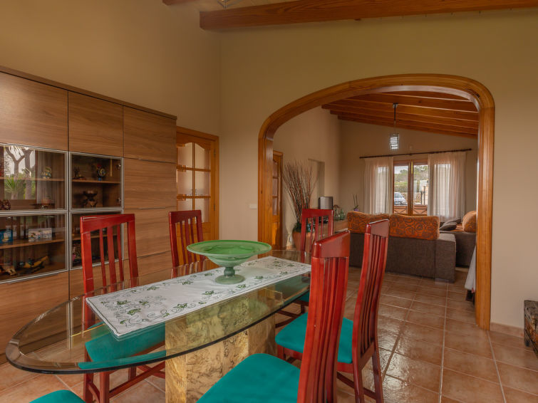 "Sa Tanca", villa 4-kamers 155 m2. Het objekt is geschikt voor 8 volwassenen. Ruim en licht, doelmatig en comfortabel ingericht: hal. Uitgang naar de zitplaats in de tuin. Groot, open woon-/eetkamer met panoramavenster met 2 slaapplaatsen (2 x 90 cm, lengte 190 cm), eettafel, Digitale TV, Flatscreen TV en stereo-installatie. Uitgang naar de zitplaats in de tuin. 1 2-pers. kamer, venster naar het binnenplaats met 2 bedden (90 cm, lengte 200 cm), air-conditioning en heteluchtverwarming. 1 2-pers. kamer, venster naar het binnenplaats met 2 bedden (90 cm, lengte 200 cm), air-conditioning en heteluchtverwarming. 1 groot 2-pers. kamer, venster naar het binnenplaats met 1 2-pers bed (150 cm, lengte 200 cm), bad/bidet/WC, air-conditioning en heteluchtverwarming. Groot keuken (oven, afwasmachine, 3 keramische glas kookplaten, magnetron, diepvriezer, elektrische koffiemachine) met eettafel. Uitgang naar het balkon. Bad/bidet/WC. Ruime zithoek in de tuin, prieel. Terrasmeubelen, barbecue, ligstoelen (8), loggia. Mooi panoramazicht op het landschap en de plaats. Ter beschikking: wasmachine, strijkijzer, kinderstoel, kinderbed tot 2 jaar, haardroger. Internet (WiFi, gratis). Garage op het terrein bij het huis. Geschikt voor families. Maximaal 1 huisdier/hond toegestaan. ETV15026