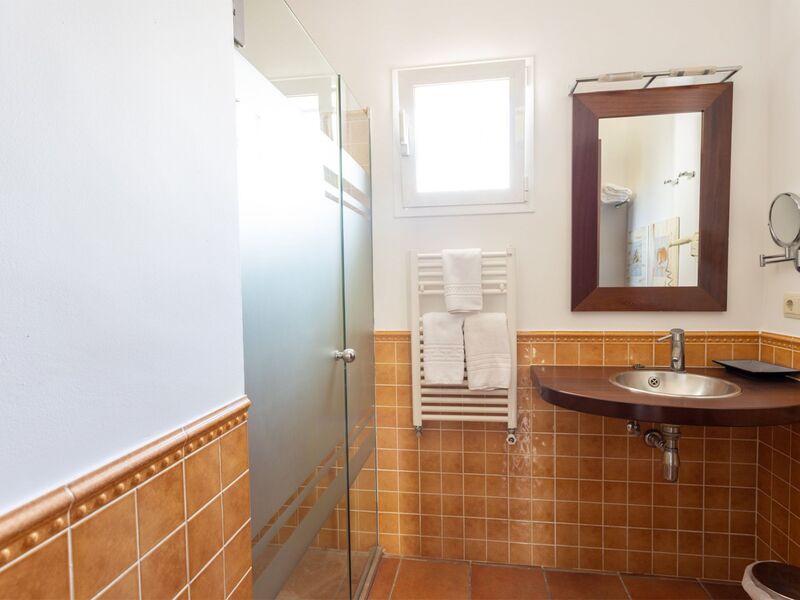 Son Bou: Mooi, comfortabele, luxueuze villa "Villas Finesse Type 1", omgeven door bomen. Aan de rand van de plaats Son Bou, rustige, zonnige ligging op een heuvel, 2 km van zee. Voor alleengebruik: terrein, tuin, openluchtzwembad (4 x 10 m, seizoensgebonden beschikbaarheid: 30.Apr. - 24.Okt.). Buitendouche, patio, terras. In het huis: internetaansluiting, Internet (WiFi), air-conditioning, wasmachine. Parkeerplaats op het terrein. Winkel 2 km, levensmiddelenwinkel 2 km, supermarkt 1 km, restaurant 200 m, bushalte "Son Bou" 450 m, zandstrand 2 km. Golfterrein (18 holes) 20 km, tennis 1.9 km, manege 1 km, kinderspeelplaats 300 m. Auto noodzakelijk. Geschikt voor families, geschikt voor senioren op aanvraag. Het objekt is geschikt voor 6 volwassenen groepen jongeren uitsluitend op aanvraag. Laden en lossen van de baggage is mogelijk bij het huis. Vliegveld 20 km van het huis.