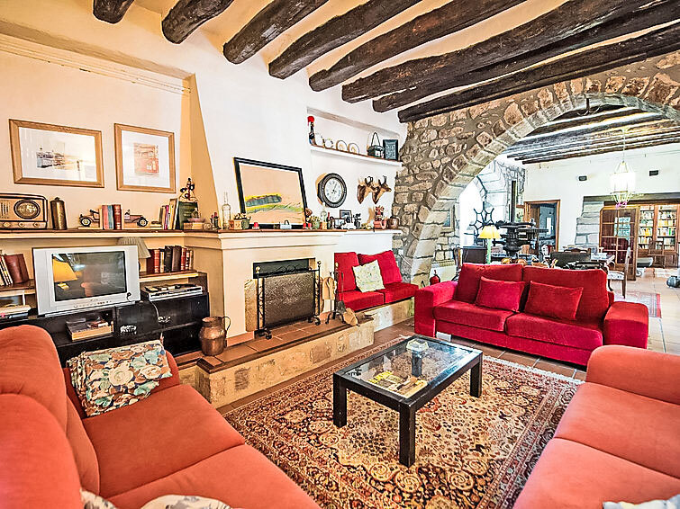 "Can Trullas", huis 5-kamers 200 m2 op 2 verdiepingen. Rustiek ingericht: hal 20 m2 met Digitale TV. Woonkamer met TV. Uitgang naar de tuin. 1 kamer met 2 bedden (90 cm, lengte 190 cm). Uitgang naar de tuin. Woonkeuken (4-pits kookplaat, oven, afwasmachine, magnetron, diepvriezer, elektrische koffiemachine). Bad/bidet/WC. Geen verwarmingsmogelijkheid. Bovenverdieping: 1 kamer met 1 2-pers bed (180 cm, lengte 190 cm), bad/bidet/WC. 1 kamer met 2 bedden (90 cm, lengte 190 cm). 1 kamer met 1 2-pers bed (180 cm, lengte 190 cm). Uitgang naar het terras. Bad/bidet/WC. Groot terras 40 m2, zithoek in de tuin 500 m2. Terrasmeubelen, ligstoelen (6). Uitzicht op de bergen en het bos. Ter beschikking: wasmachine. Internet (WiFi, gratis). Maximaal 1 huisdier/hond toegestaan. HUTB005785